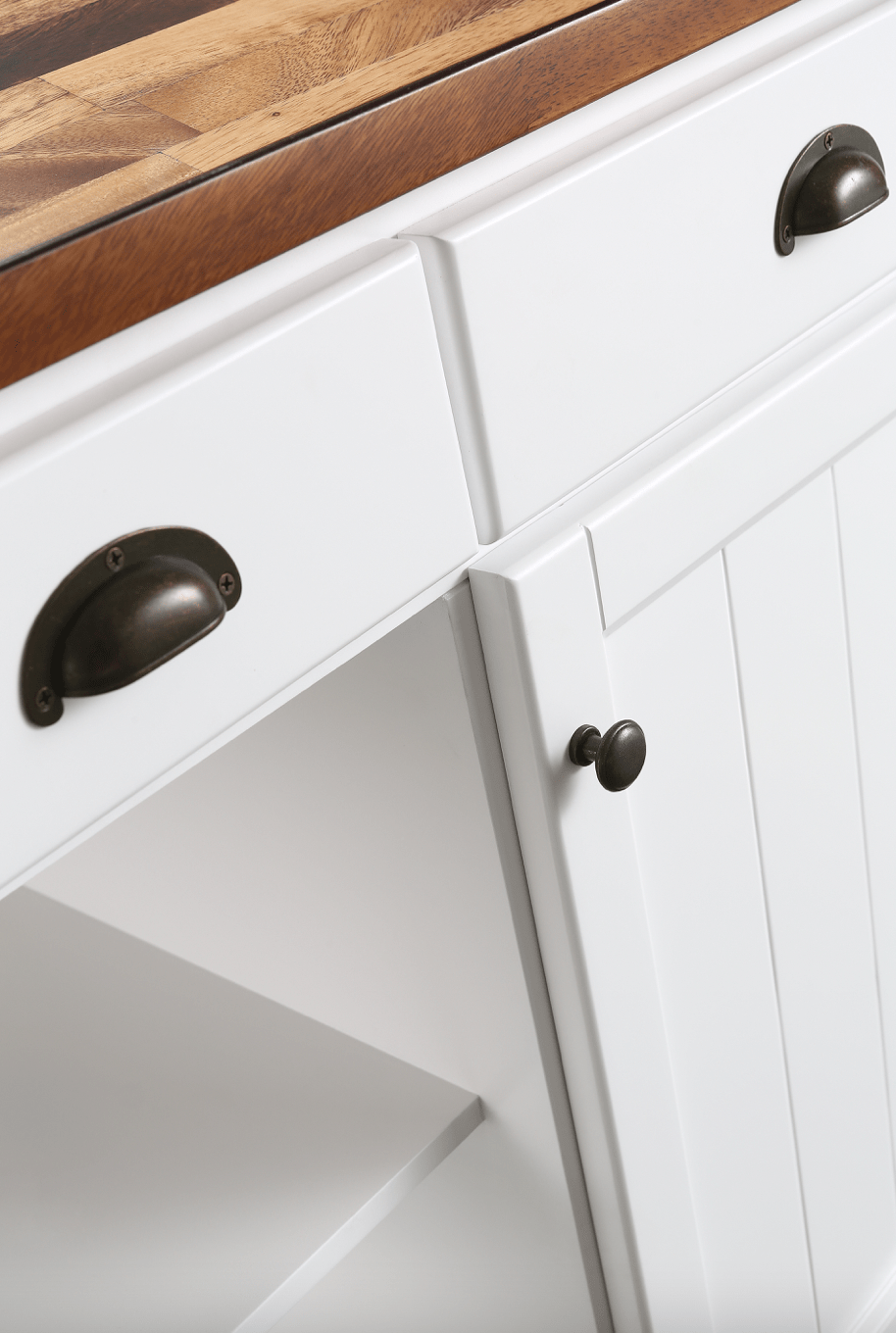 Meticulously crafted from solid hardwood, this island will maintain its beauty and functionality for years to come. The 52" W x 28" H footprint of this island is perfect for small sized kitchens needing extra storage and counter space. 3 spacious drawers, 1 cabinet, ample shelf space, and espresso wood countertop make this multi-functional island the perfect centerpiece for your kitchen.