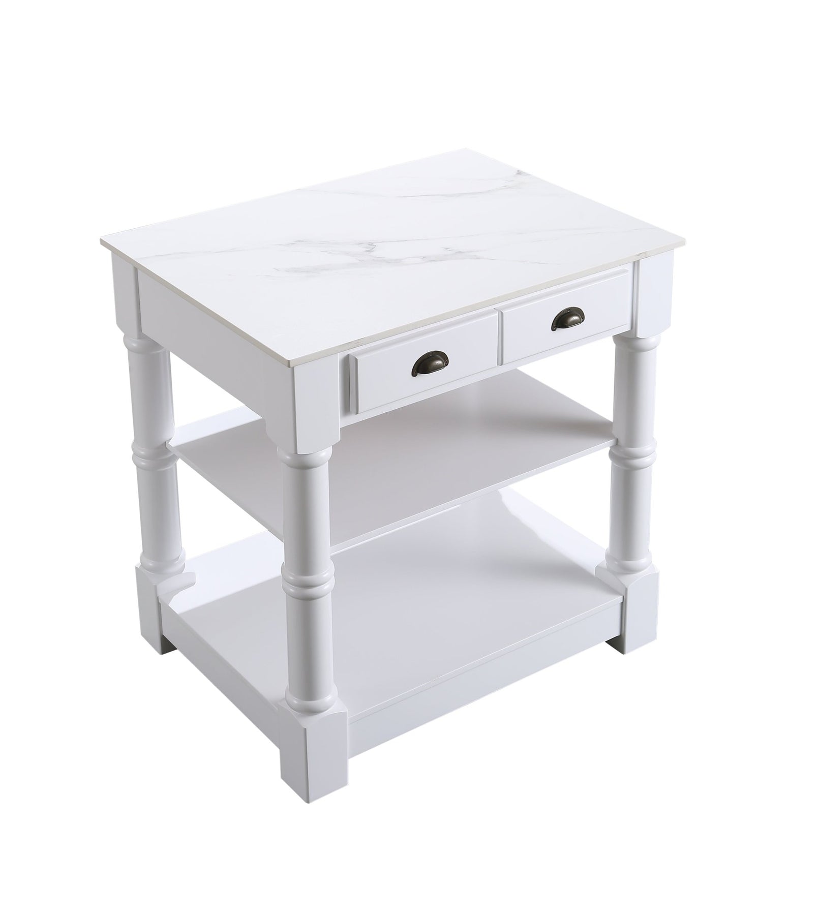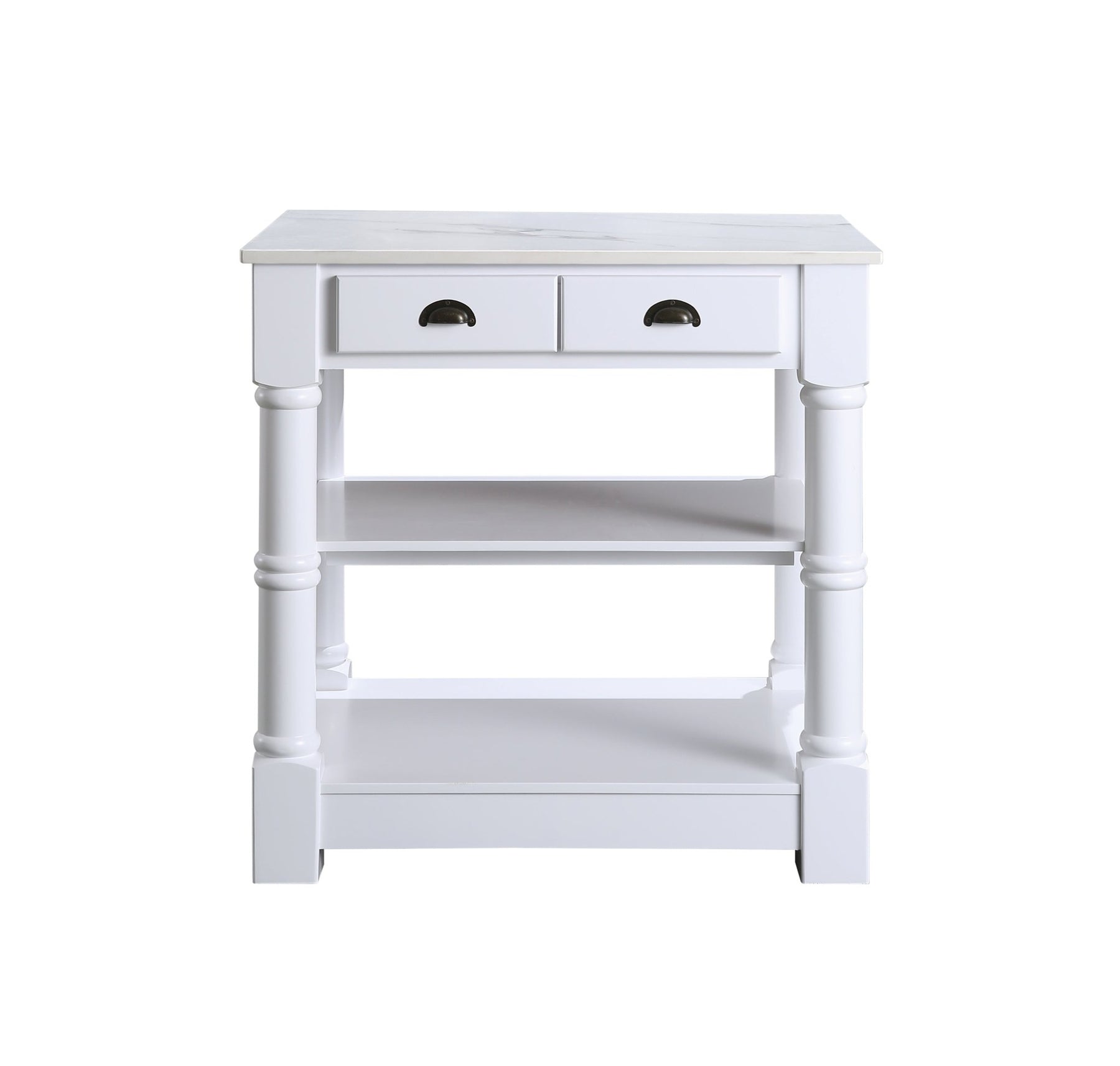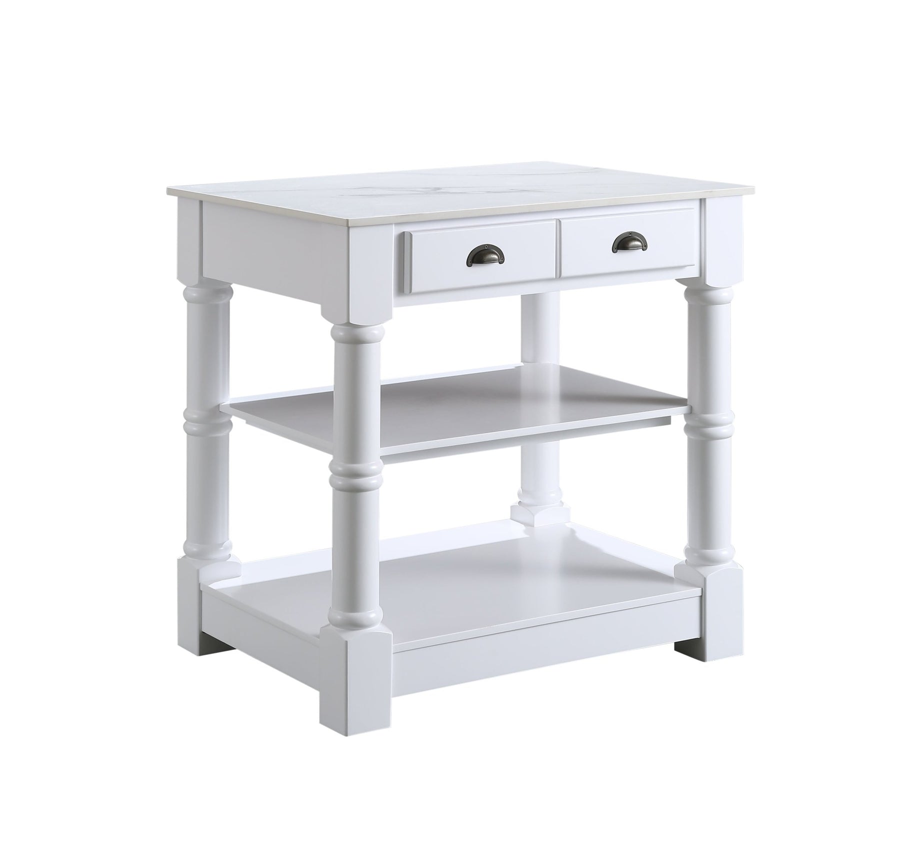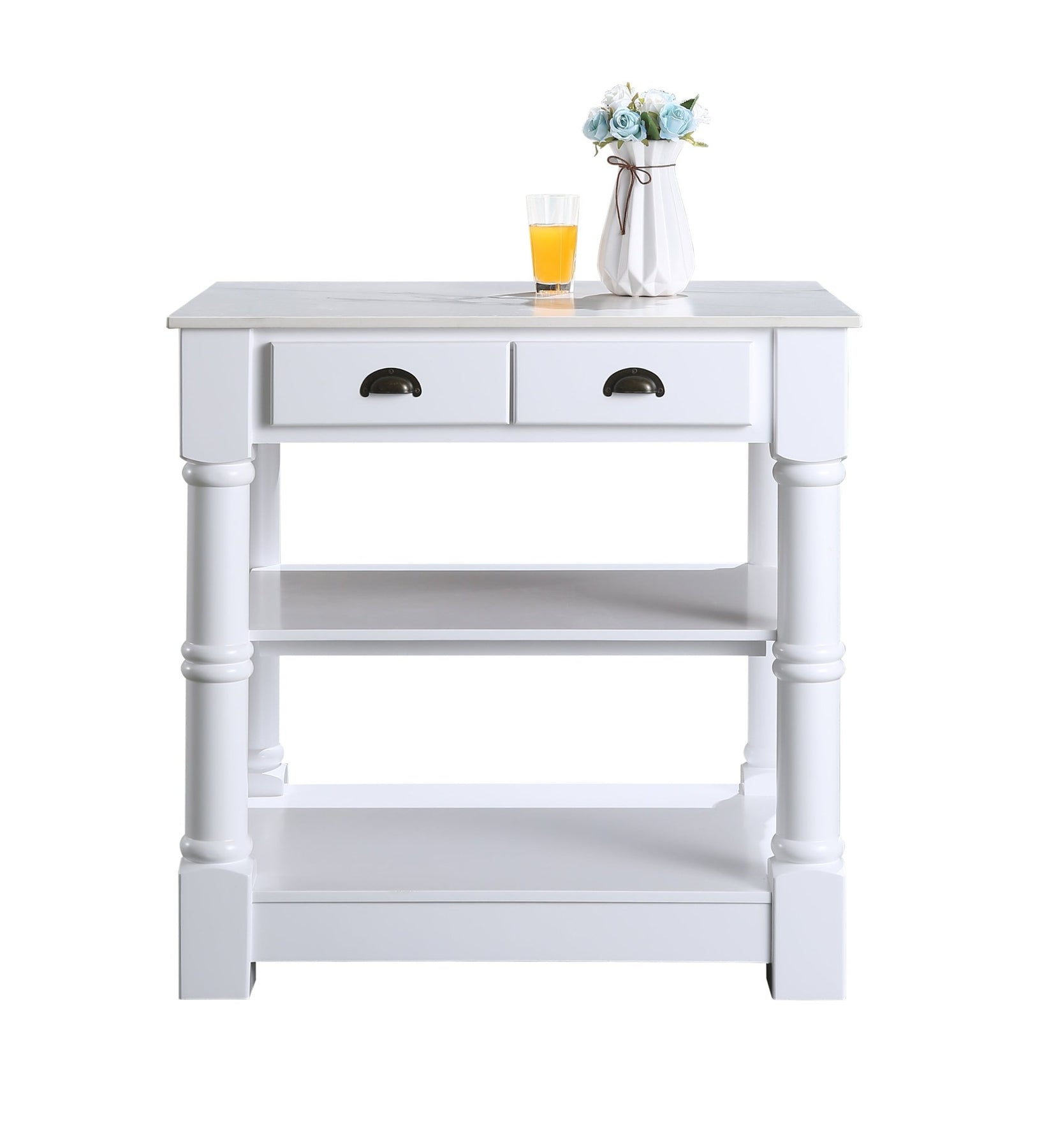 Complete your kitchen renovation with the Monterey 36" Kitchen Island by Design Element. Meticulously crafted from solid hardwood, this island will maintain its beauty and functionality for years to come. The 36" W x 36" H footprint of this island is perfect for small sized kitchens needing extra storage and counter space. 2 spacious drawers, ample shelf space, and sintered stone countertop make this multi-functional island the perfect centerpiece for your kitchen.